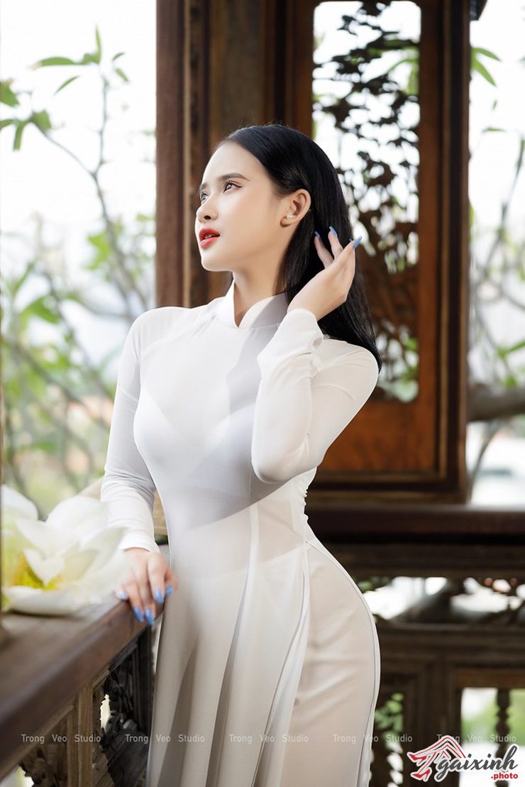 41+ Ảnh Ngọc Babe Áo Dài Trắng Khoe Dáng Cực Nuột